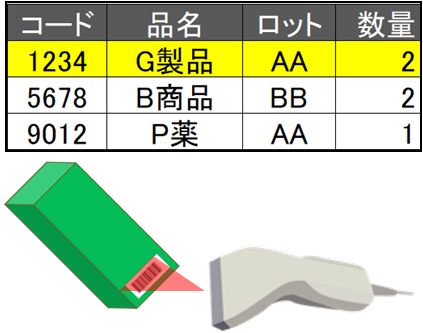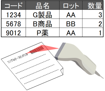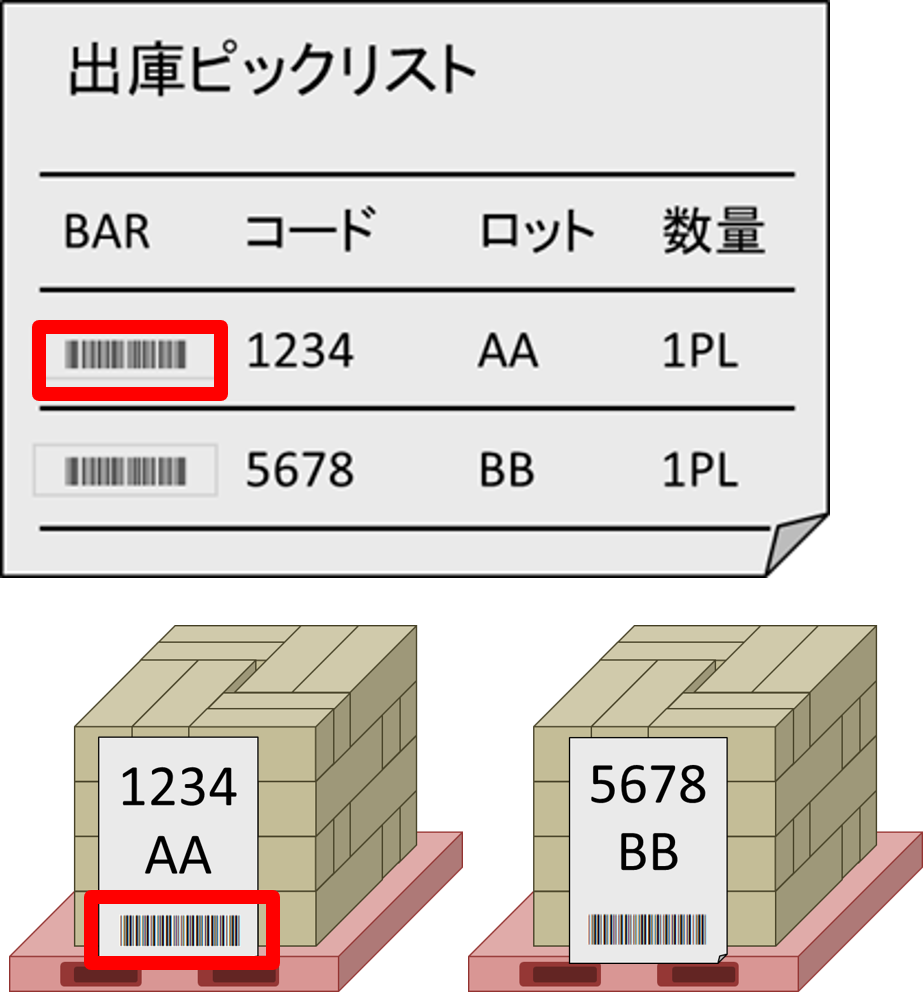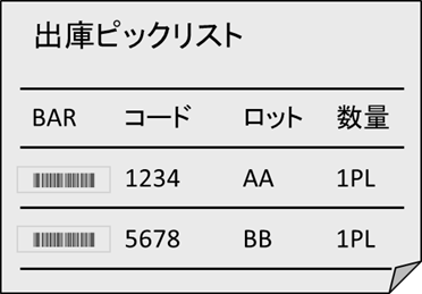ピックリストのバーコードと在庫カンバンのバーコードを照合する事により、誤ピッキングを防止します。