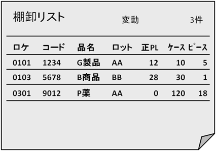 指定日当日に変動した在庫データのみがリストに記載されます。毎日実施する事により、在庫管理品質を保つ事ができます。