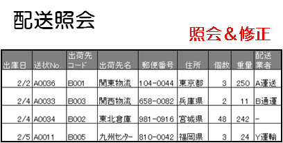 配送照会メニューにて、送り状データの照会・修正・登録・削除が行えます。