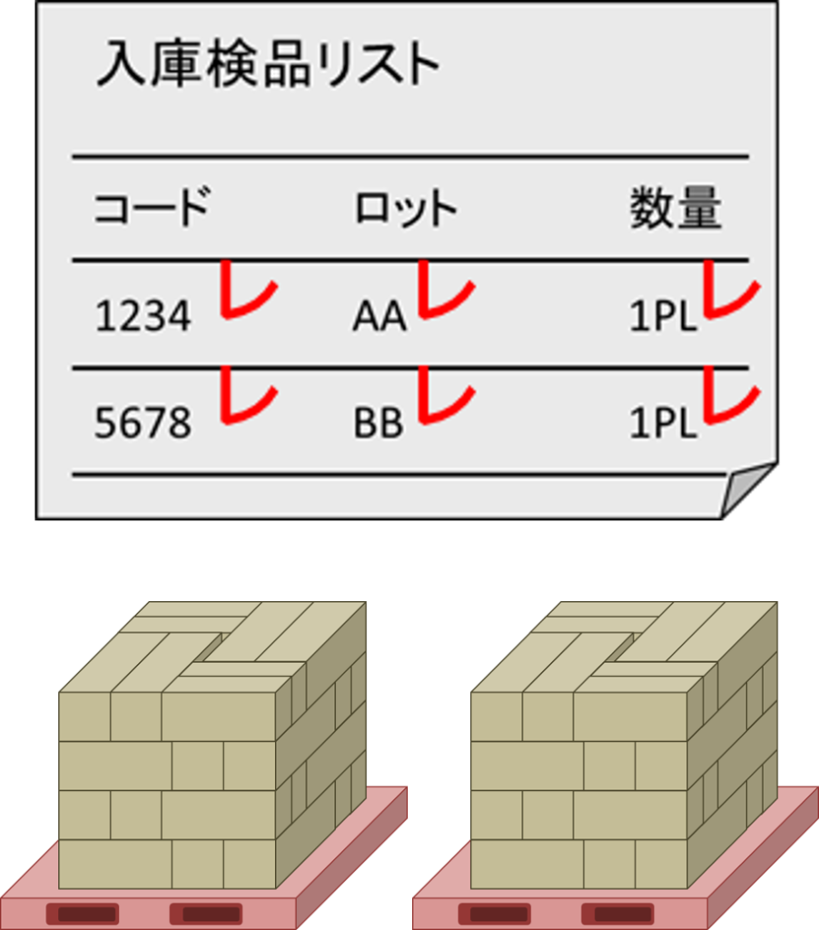 ②入庫された製品を、入庫検品リストと相違がないかチェックします。
